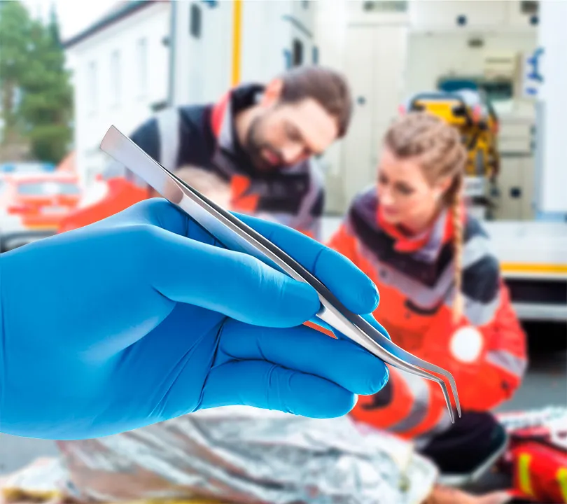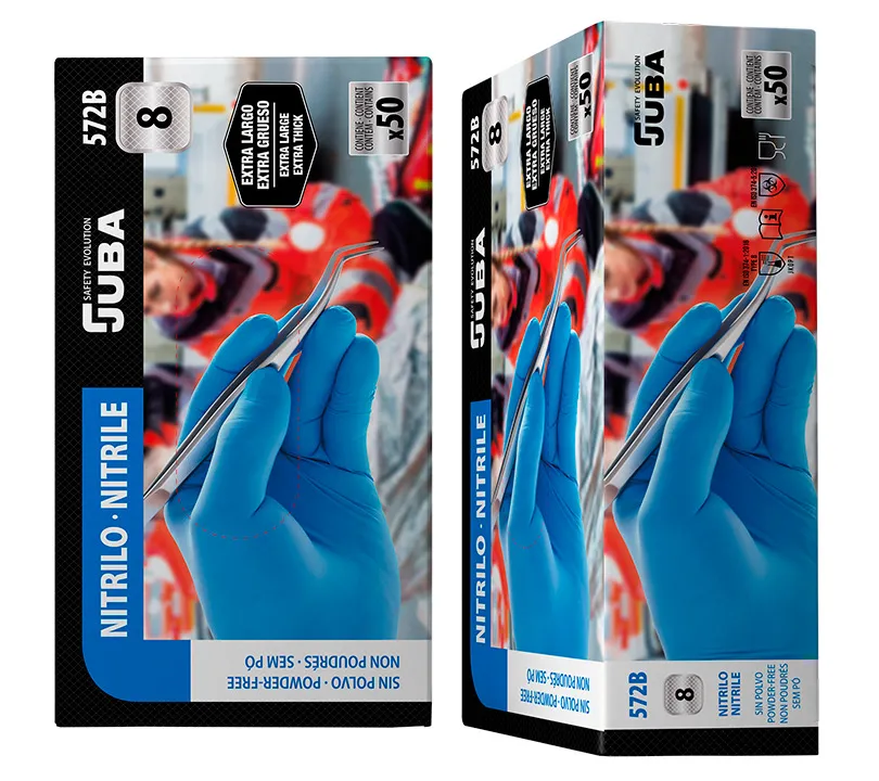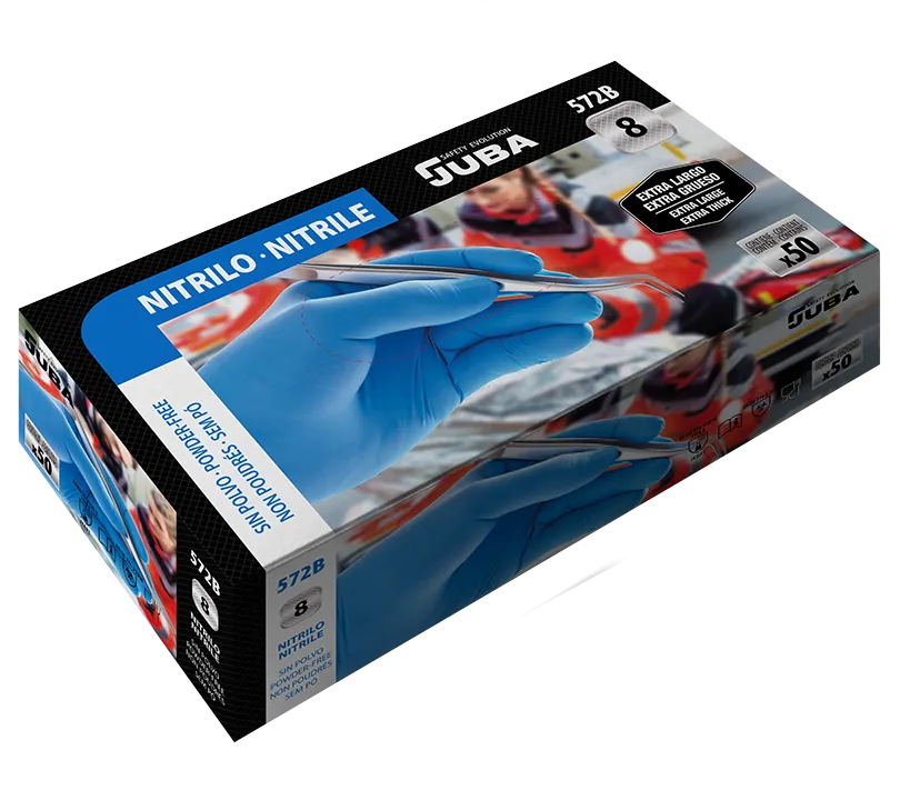 Guante de emergencia técnica (EMT), nitrilo sin polvo color azul.